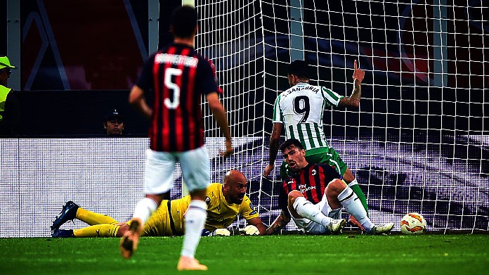 SINTESI PRIMO TEMPO – Disastroso primo tempo del Milan che chiude in svantaggio 1-0 il primo tempo. Il Betis Siviglia infatti inizia aggressivo, pressando alto e impedendo ai rossoneri di trovare sbocchi. Gioca meglio la squadra di Setien, che alla mezz’ora trova il meritato vantaggio. Lo Celso va via a Zapata in area, mette dentro il pallone, Reina e Romagnoli dormono, e Sanabria deve solo appoggiare in porta lo 0-1. Nel finale il diavolo accusa il contraccolpo, anche se nel recupero avrebbe l’occasione di pareggiarla. Higuain arriva solo davanti a Lopez, incredibilmente però non calcia, prova a saltarlo e si fa recuperare da Mandi. Si va dunque a riposo con il Betis Siviglia avanti 1-0 San Siro