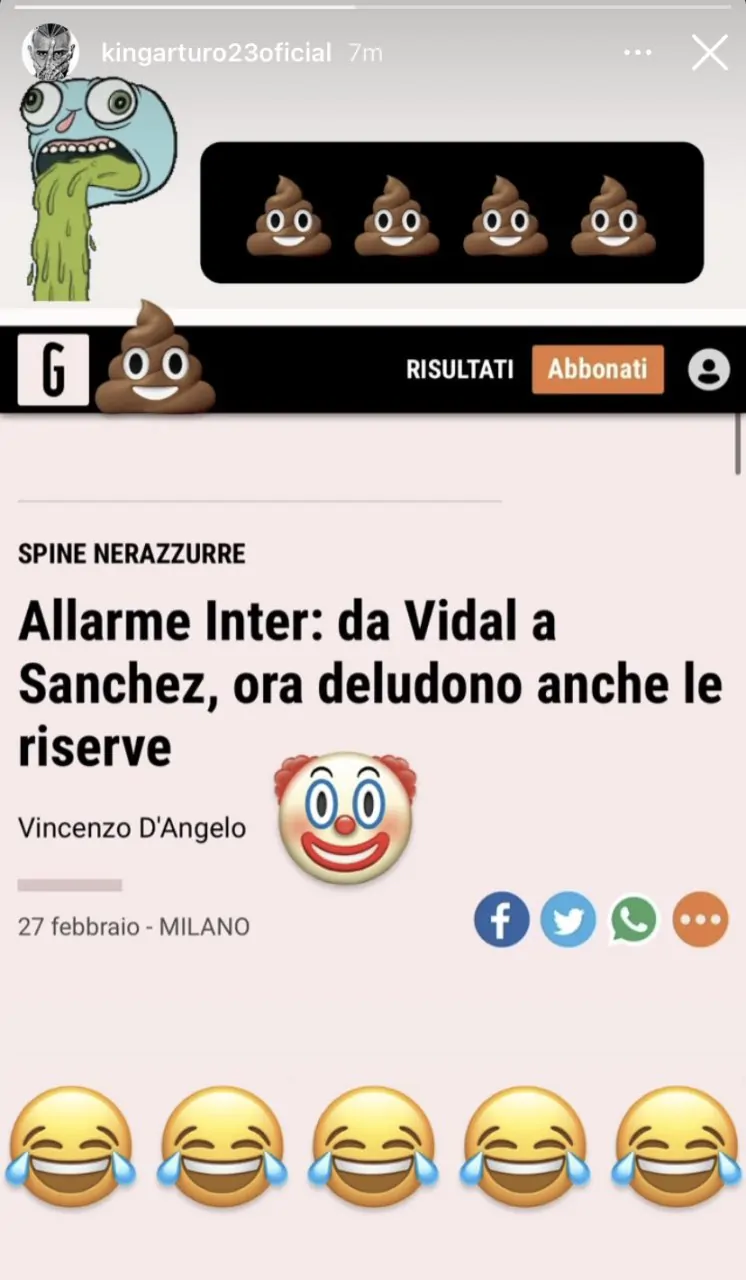 Con una storia Instagram, il cileno ha risposto all’articolo che sottolineava le scarse prestazioni dell’ultimo periodo.