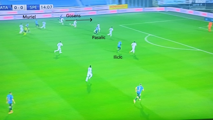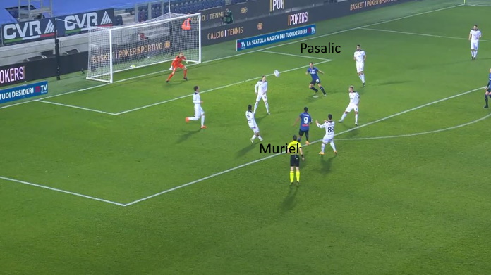 Due diverse azioni (la seconda è quella del gol). In entrambi i casi, Muriel svaria molto a sinistra mentre Pasalic riempie il centro dell’attacco.