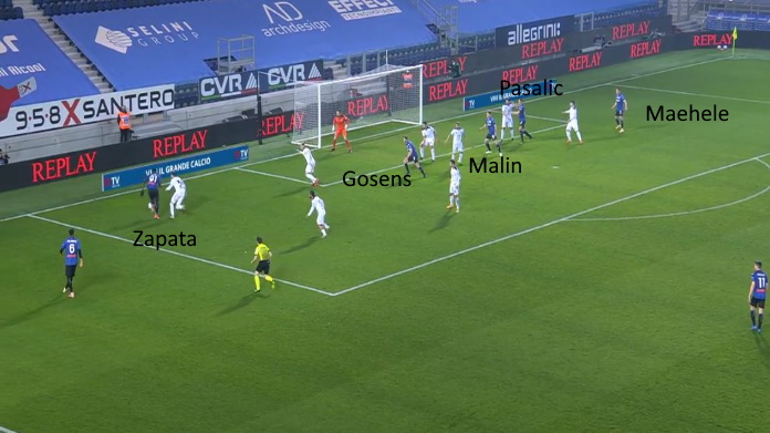 Ne è un esempio la traversa del croato su cross di Zapata. Per quanto abbia il fisico da classico nove, anche l’ex Sampdoria svaria parecchio in posizioni piuttosto aperte del campo. E’ quindi necessario che il resto della squadra assorba i suoi movimenti. Ovviamente, non c’è solo Pasalic che riempie l’area di rigore, visto che l’Atalanta è maestra nell’attaccare con tanti giocatori. Tuttavia, non c’è dubbio che il croato in quelle specifiche situazioni dia qualcosa in più rispetto ai suoi compagni.