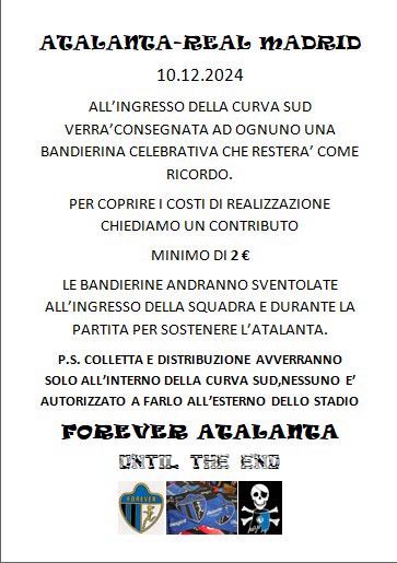 Atalanta Real Madrid, la Curva Sud pronta ad unirsi alla Nord con una grande coreografia. Il comunicato