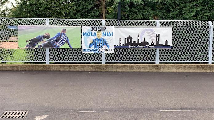 E fuori al campo di allenamento della Dea, i tifosi nerazzurri hanno voluto far sentire la loro vicinanza a Ilicic affiggendo degli striscioni a lui dedicati. «Josip, Bergamo è con te» recita il cartellone, con un’immagine del calciatore sloveno.