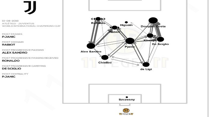Come si può vedere nella “Pass Map” pubblicata da 11Tegen, Higuain ha faticato parecchio nell’essere incisivo. Il Pipita è stato poco agile e prestante negli ultimi metri, coi bianconeri che hanno faticato parecchio nel servirlo. Da notare come, nel grafico, sia quasi escluso dalla manovra.
