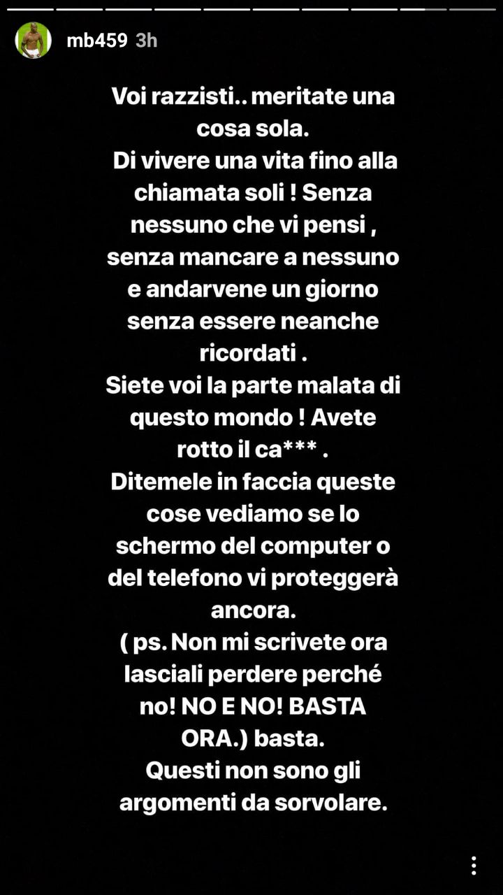 Mario Balotelli torna ad usare i suoi profili social come valvola di sfogo e, ancora una volta, al centro del bersaglio ci sono gli insulti razzisti