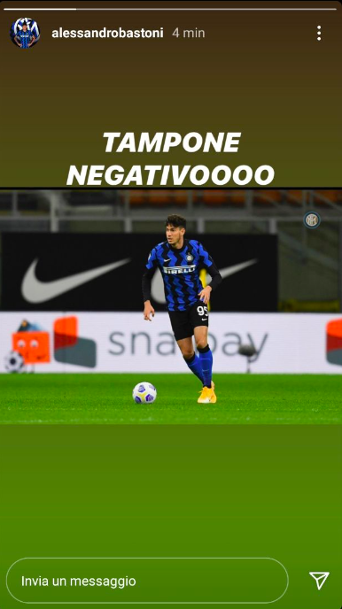 Bastoni esulta sui social: «Tampone negativo» – FOTO