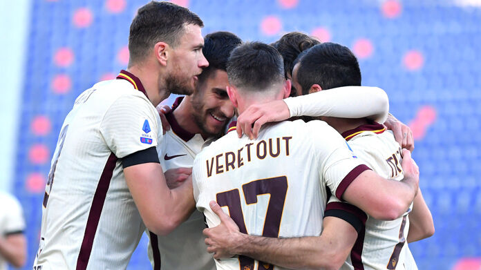 MARCATORI: 5′ aut. Poli, 10′ Dzeko, 15′ Pellegrini, 35′ Veretout, 43′ Mkhitaryan (R); 24′ aut. Cristante (B)