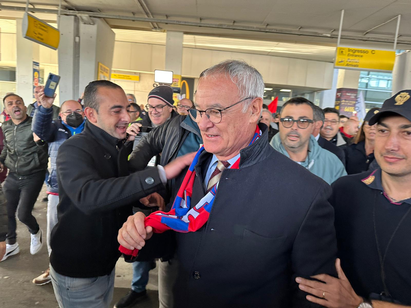 Claudio Ranieri, neo allenatore del Cagliari, è stato accolto da un bagno di folla al suo arrivo all’aeroporto di Elmas