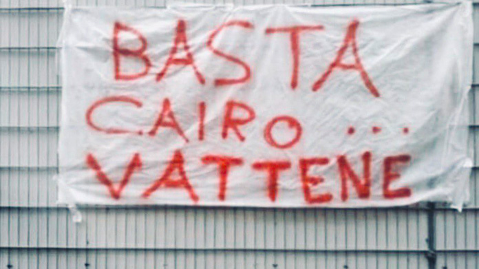 Davanti alla sede di Rcs a Milano, di cui il patron granata è presidente e amministratore delegato, alcuni tifosi hanno posto due striscioni. Sul primo si legge: “Cairo vattene“. Sul secondo: “Game Over. Torino ti odia“.
