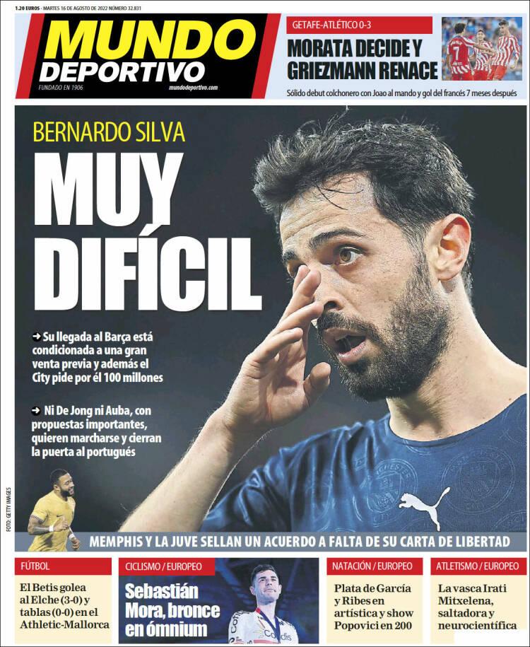 Come titola l’edizione odierna di Mundo Deportivo, la trattativa tra Barcellona e Manchester City per Bernardo Silva è Mui Difìcil.