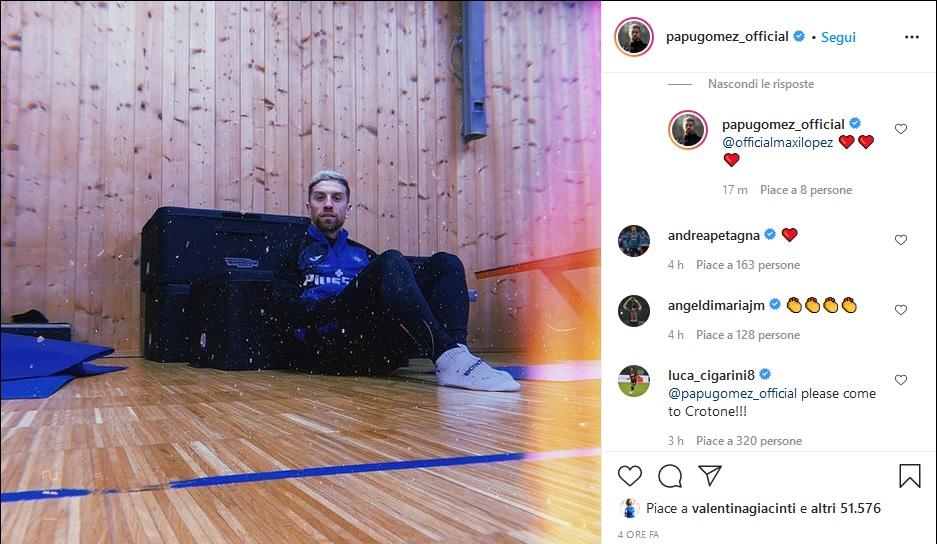 Cigarini ha commentato un post di Gomez, scrivendo: «Per favore, vieni al Crotone».