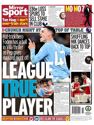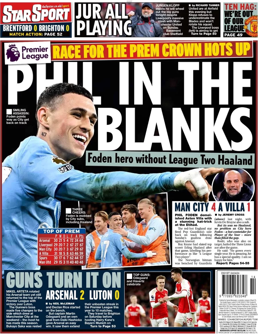 In Premier League continua il botta e risposta ai vertici (in attesa del Liverpool) e i Citizens rispondono alla vittoria dell’Arsenal contro il Luton. Decisiva la prestazione del numero 47 che sulle prime pagine inglesi si prende la scena.