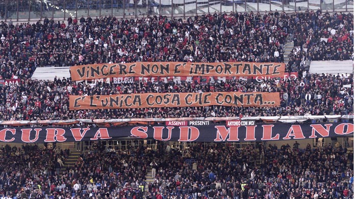 Curva sud del Milan che scrive: Vincere non è importante, ma è l’unica cosa che conta..