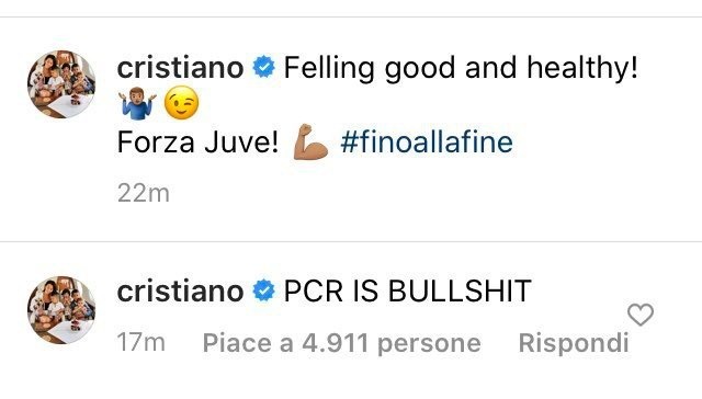 Il portoghese ha deciso di sfogarsi su Instagram: «Sentirsi bene e in salute! Forza Juve! Il tampone è una ca**ata».