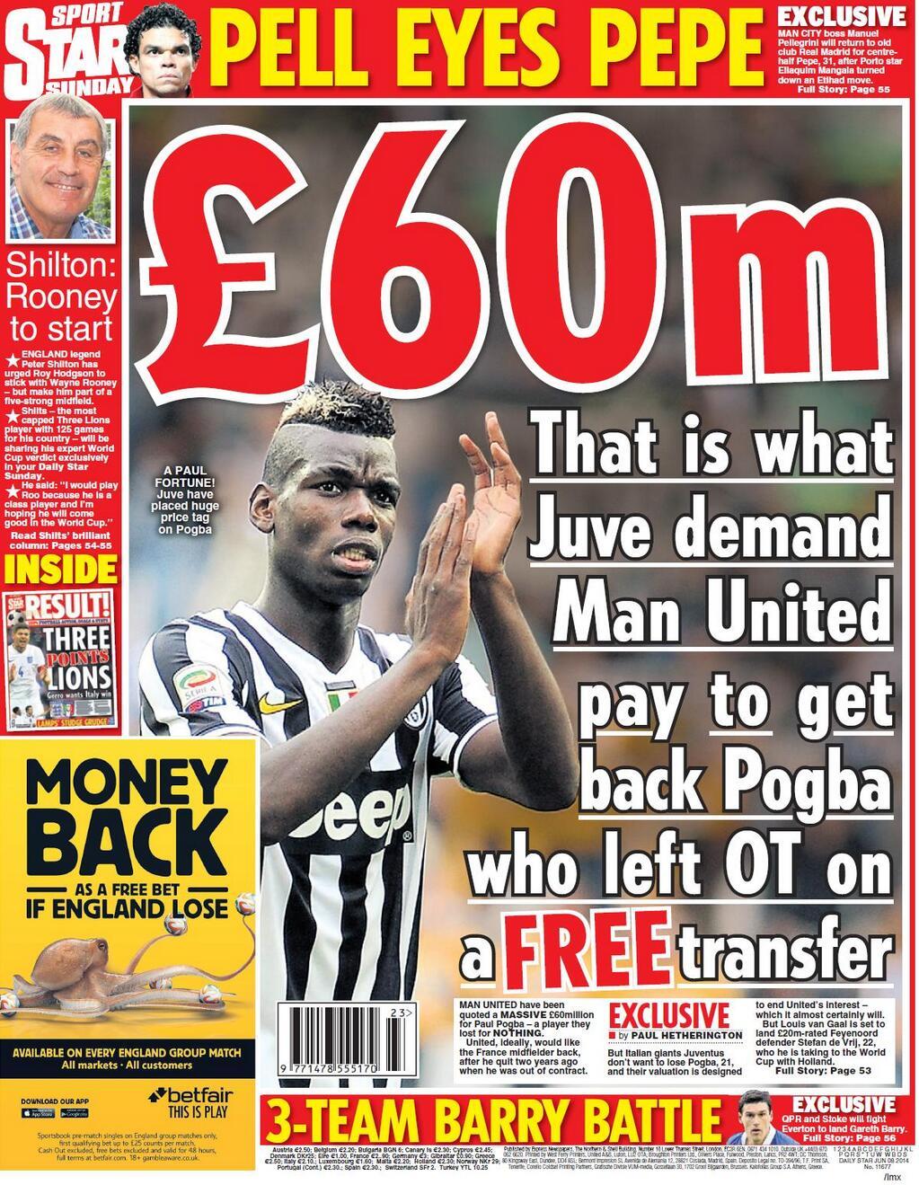 Dall’inghilterra: «United, 60 milioni per Pogba!»