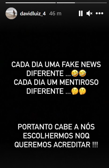Con una storia su Instagram David Luiz ha smentito le voci che lo volevano in procinto di trovare un nuovo club