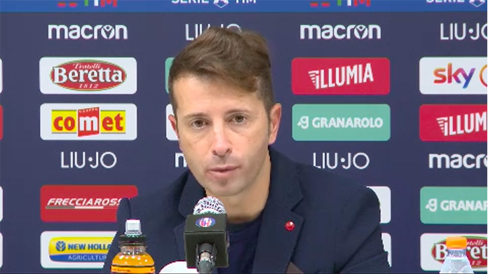 Le sue parole: «Mihajlovic lo abbiamo sentito durante la gara: ci ha chiesto più intraprendenza e più conclusioni a rete però è rimasto soddisfatto della prestazione. Arnautovic si è un po’ impuntato con la gamba per allungare la palla in porta e ha sentito male al ginocchio, ma ora era già sorridente con la squadra, credo non sia nulla. Sinisa aveva già sottolineato la volontà da parte dei giocatori di qualità di prendersi qualche rischio in più e oggi si è visto, il gol dà fiducia a giocatori come Vignato e Barrow. Arnautovic aveva bisogna di rodaggio, era la sua prima partita, sappiamo che ha bisogno di tenere il pallone e sentirsi ispirato, magari sbagliando anche in alcune circostanze. Cambiaso ha dimostrato le sue qualità tecniche e tattiche, dimostrando anche la capacità di venire a giocare non solo nel binario di destra ma anche all’interno del campo, anche con il destro, così facendo può diventare un giocatore imprevedibile muovendosi anche tra le linee».