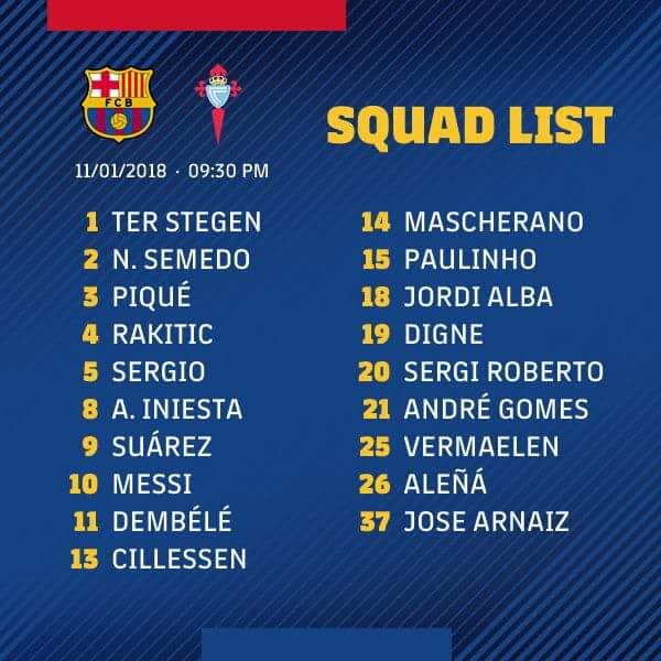 Se c’era ancora qualche dubbio che Deulofeu e Rafinha fossero sul piede di partenza da Barcellona, adesso non c’è più. Basta infatti dare un’occhiata alla lista dei convocati per la partita di Coppa del Re di domani tra blaugrana e Celta Vigo per rendersi conto che i due giocatori offensivi sono stati preservati dall’impegno del Camp Nou.