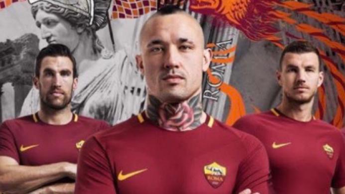 Svelata la maglia 2017-18 della #Roma. La indosseranno i calciatori già domenica contro il Genoa pic.twitter.com/DdmgClK61C
