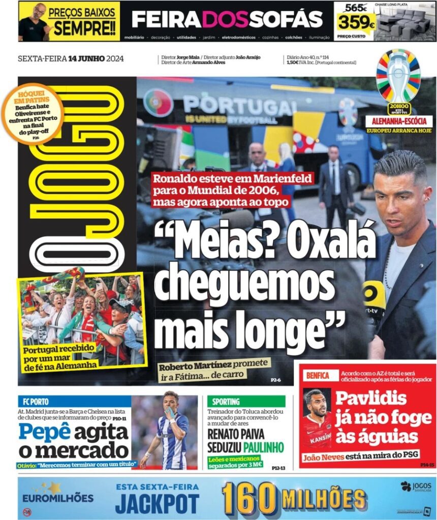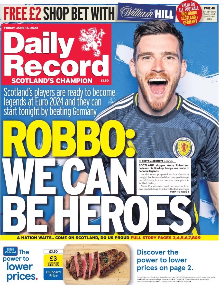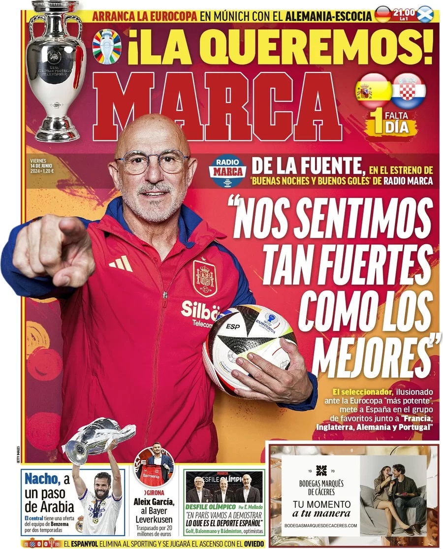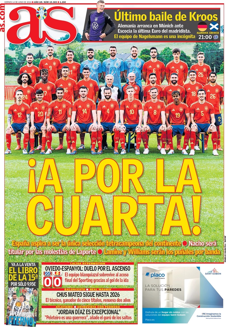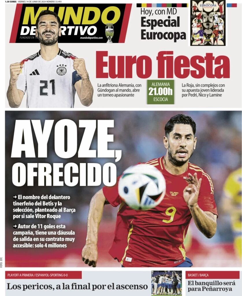 Alle 21.00 di questo sera iniziano gli Europei 2024 con Germania-Scozia. L’attesa è finita e in tutto il vecchio continente l’attenzione sarà sulle squadre che si contenderanno la vittoria finale. Ecco le prime pagine dei principali quotidiani stranieri.