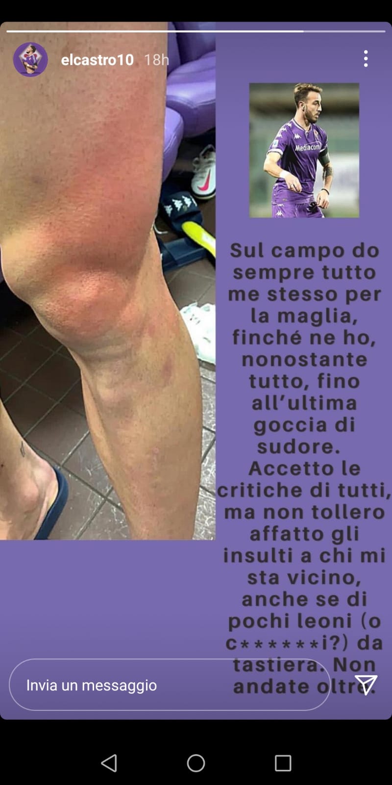 Gaetano Castrovilli, numero 10 della Fiorentina, con una storia sul suo profilo Instagram ha risposto alle critiche arrivate nei suoi confronti.