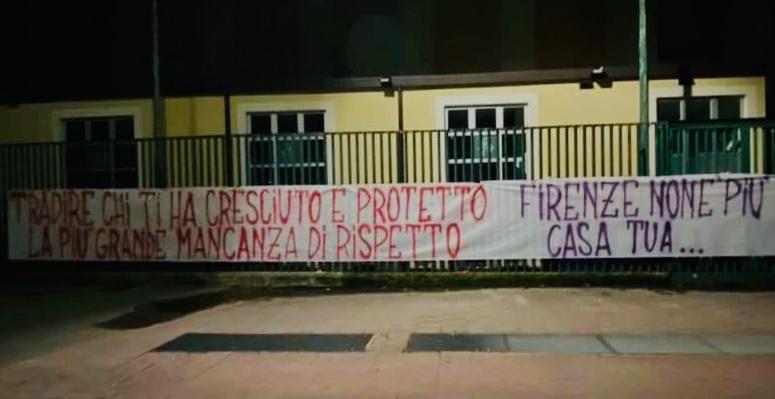 Lo striscione recita così: «Tradire chi ti ha cresciuto e protetto la più grande mancanza di rispetto. Firenze non è più casa tua… Infame».
