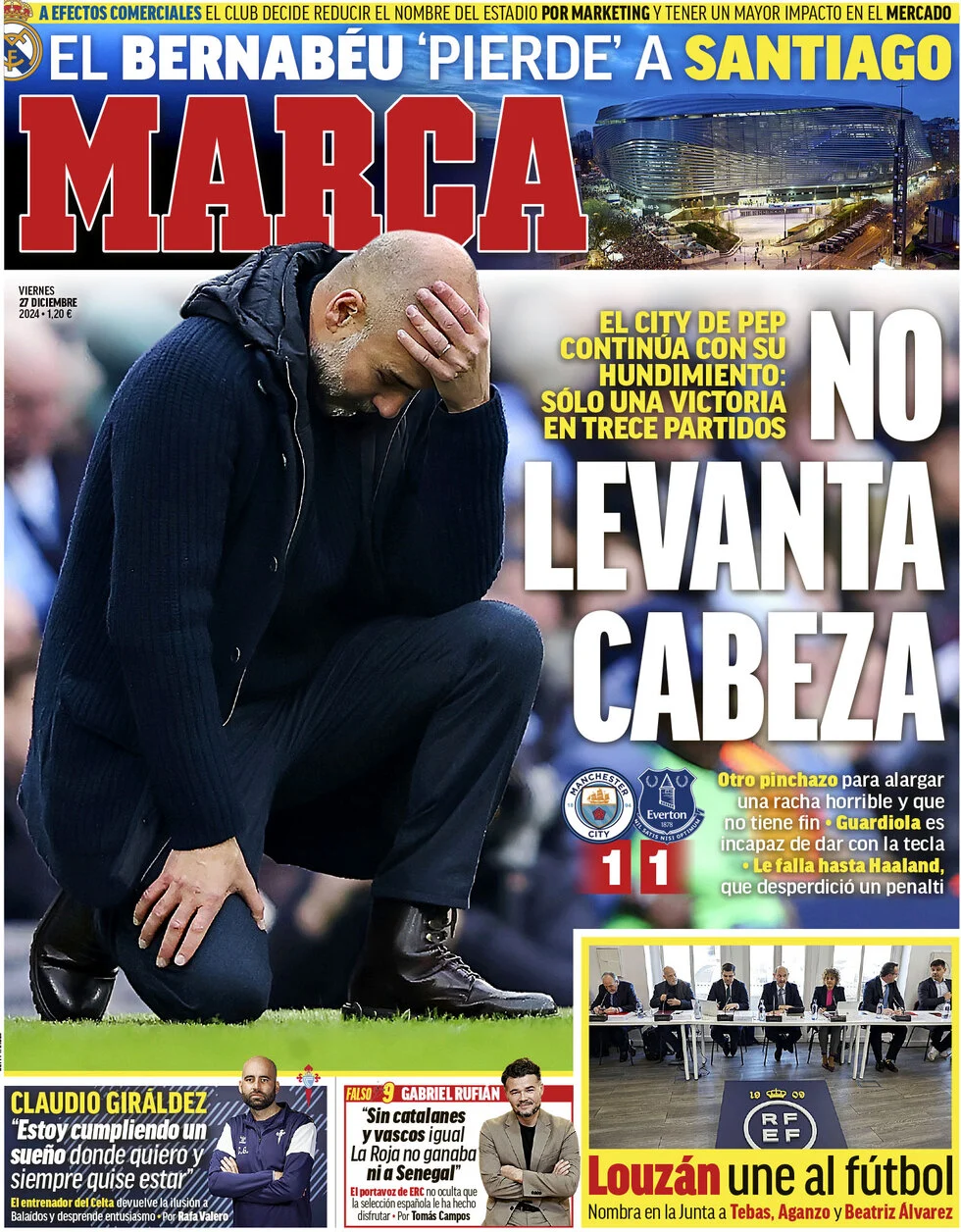 Guardiola e il suo Manchester City sono in piena crisi. Tale situazione meraviglia molto l’intero mondo calcistico europeo, soprattutto in Spagna dove “The Observer Sport” e “Marca” hanno aperto la rassegna con il tecnico Guardiola disperato.