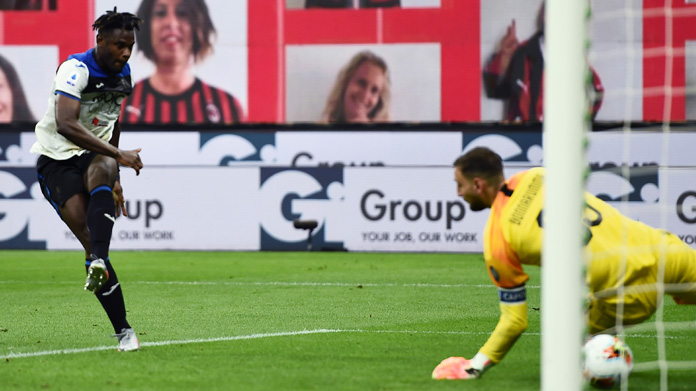 34′ Gol dell’Atalanta – Duvan Zapata è lesto a correggere in rete una prima conclusione di Freuler deviata dalla difesa rossonera