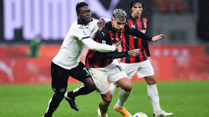 78′ Gol del Milan – Rafael Leao realizza una doppietta sbucando alle spalle dei difensori dello Spezia in seguito ad una sponda di Kessie