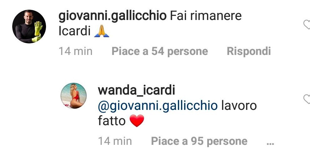 Alla richiesta tra i commenti di un tifoso di far rimanere Icardi a Milano, ha risposto sicura:«Lavoro fatto».