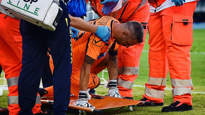 Non è partita col botto la stagione di Stefano Sorrentino: il portiere del Chievo è infatti uscito dal campo ieri, proprio sul finire della partita con la Juventus, a seguito di uno scontro di gioco con Cristiano Ronaldo. Una mezza disdetta in casa clivense: l’estremo difensore era stato fino a quel momento uno dei migliori in campo dei suoi ed aveva in pratica costretto i bianconeri quasi al pareggio, prima che sull’azione che aveva portato al gol – annullato dal VAR – di Mario Mandzukic si scontrasse del tutto fortuitamente con CR7. Immediata così la sostituzione del portiere, che per qualche istante pareva perfino aver perso i sensi: dopo attimi di tensione alla fine comunque le ultime da casa Chievo parlavano di un infortunio comunque meno grave del previsto.