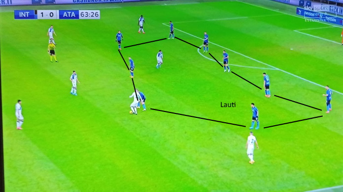 Nel secondo tempo, paradossalmente è stato poi Lautaro che meglio ha espresso la grande generosità dei nerazzurri. Conte gli ha infatti chiesto un lavoro sfiancante in fase di non possesso. L’argentino si abbassava, nella propria trequarti sulla stessa linea dei centrocampisti: si formava quindi un 5-4-1 molto solido, che come prima cosa cercava di togliere spazi agli avversari. L’Inter è così riuscita, seppur con qualche affanno nel finale, a resistere all’assedio orobico.