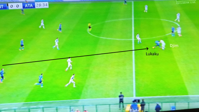 Due dei molti lanci da dietro per Lukaku, che però perde il duello contro Djimisiti.