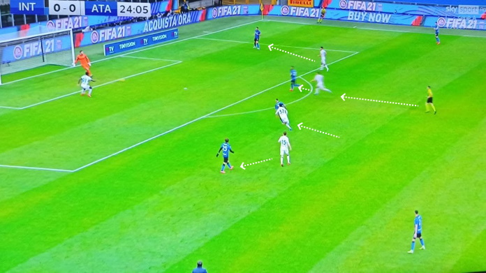 Inoltre, anche quando Lukaku riusciva a mettere il pallone a terra, i giocatori dell’Atalanta erano bravi a sporcargli successivamente la giocata. Il belga ha quindi sofferto più del solito le marcature rivali. In un match poco brillante con la palla, i nerazzurri sono stati cinici e brillanti nel trovare il gol con un episodio.