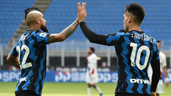 Inter (3-5-2): Handanovic; Skriniar, de Vrij, Bastoni; Hakimi, Barella, Brozovic, Vidal, Young; Lautaro Martinez, Lukaku. All. Conte
