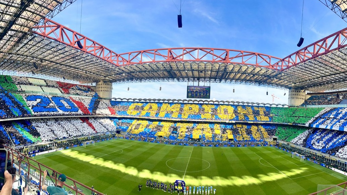 A proposito di festeggiamenti, spettacolare il colpo d’occhio di San Siro dove si può ammirare una strepitosa coreografia in occasione del 20esimo Scudetto.