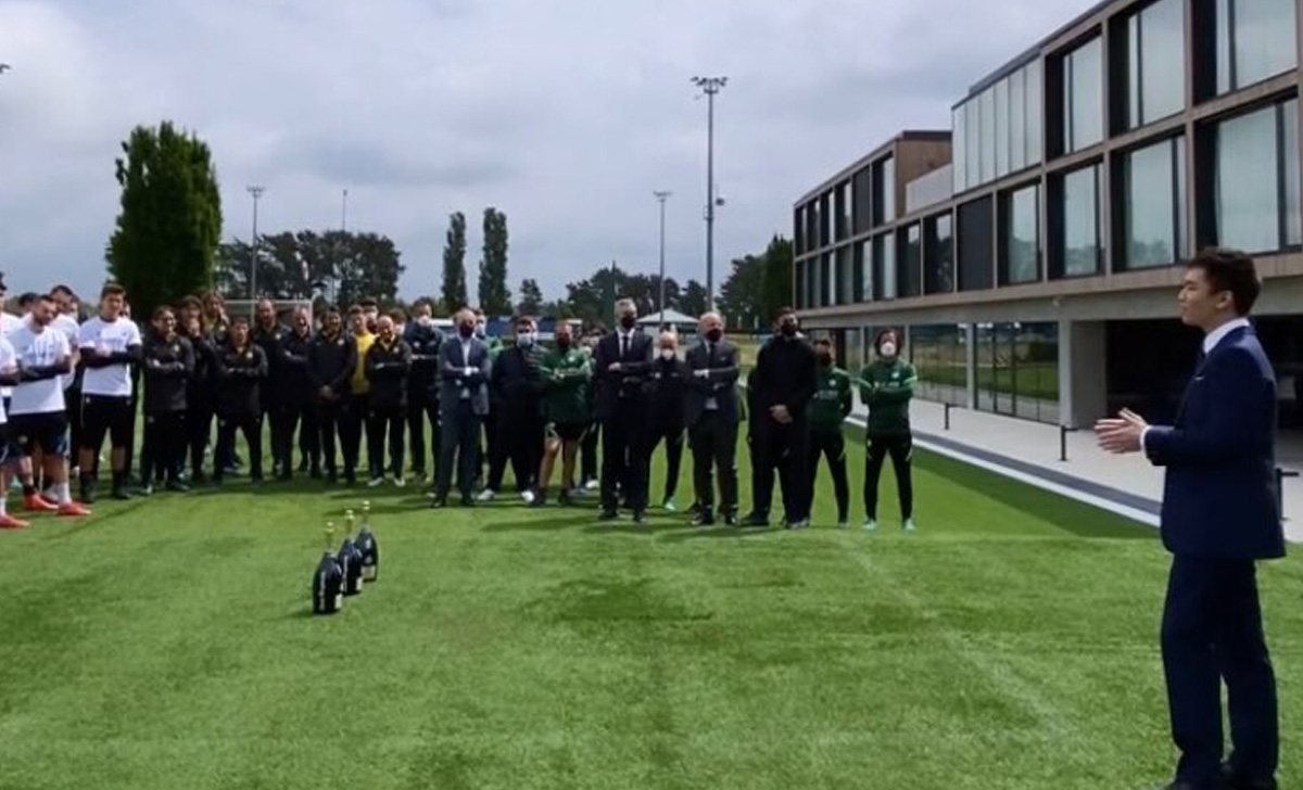 Inter, festa scudetto ad Appiano Gentile: brindisi con Zhang e maglie celebrative – VIDEO