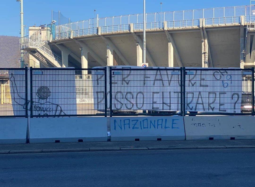 E oggi così, a Bergamo, la Curva Nord dell’Inter ha esposto uno striscione fuori dallo stadio dove stasera si giocherà il match con l’Atalanta. “Per favore, posso entrare?”. Di fianco proprio Leonardo Bonucci, con la mano alzata.