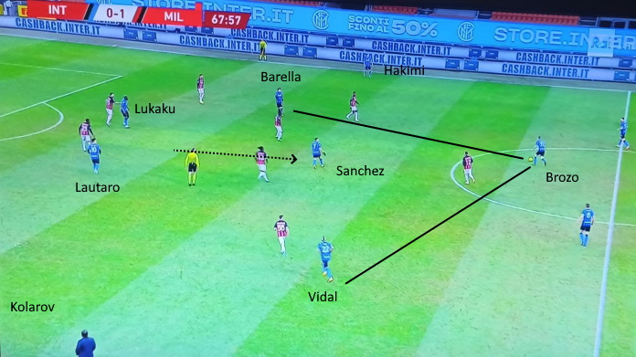 Inoltre, con il rombo (modulo che fa tanta densità al centro), Sanchez ha inciso anche tra le linee, con punte e centrocampisti che combinavano bene per vie centrali. I nerazzurri riuscivano a sfondare in tanti modi.