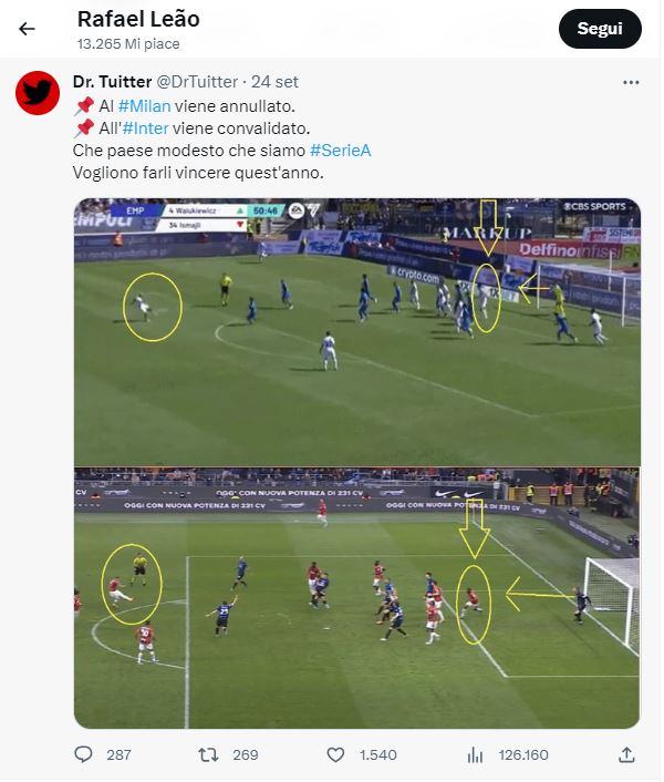 Inter, proteste dei tifosi del Milan sul gol di Federico Dimarco: tra i vari tweet spunta anche il like di Rafael Leao