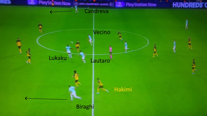 Nel gioco di Conte, le punte sono fondamentali tanto per la risalite quanto per la rifinitura. Lo scopo, tramite palleggio paziente che parte da dietro, è arrivare alla verticalizzazione per loro. I due attaccanti, che giocano vicinissimi tra di loro, devono saper venire incontro: devono giocare spalle alla porta, dialogando tra loro a pochi tocchi o premiando l’inserimento delle mezzali. Si vedono vere e proprie giocate a memoria, in spazi molto stretti. Un esempio nella slide sotto.