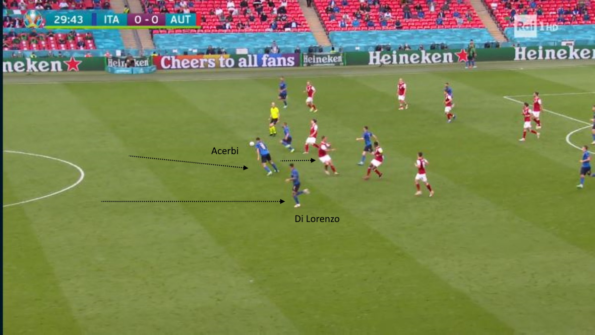 Contro-pressing azzurro, con Acerbi e Di Lorenzo molto alti.