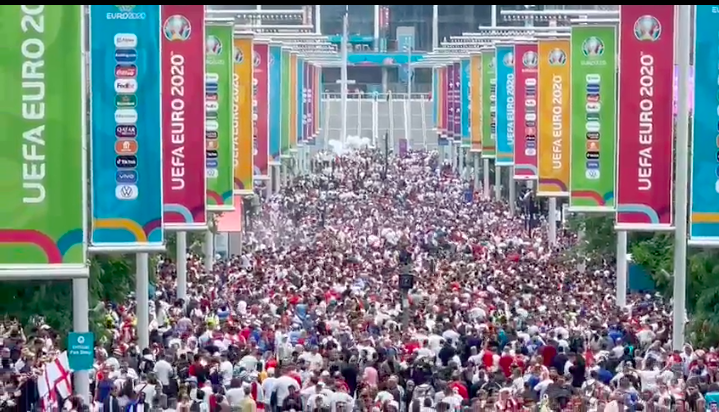 Ore 16.00 – Una folla oceanica fuori da Wembley. Tantissimo entusiasmo fuori dallo stadio: a 5 ore dall’inizio della finale di Euro 2020, l’esterno dello stadio è già “invaso” da tantissimi tifosi inglesi.