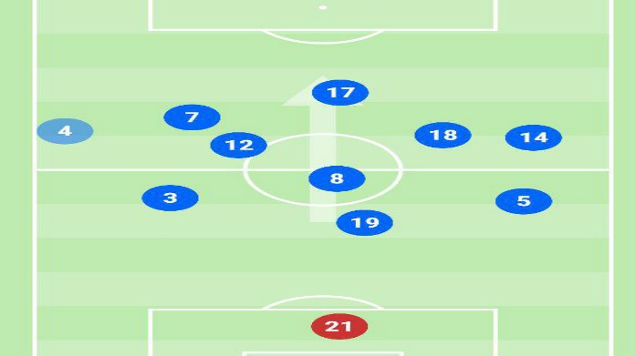 Come si vede nella foto sopra, Immobile (e anche Belotti) è un giocatore che tende ad aggredire la profondità. I movimenti di Pellegrini dentro il campo sono preziosi e aumentano la rifinitura degli Azzurri. Tuttavia manca qualità tra le linee.