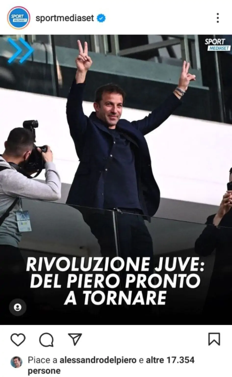 Juve, Del Piero torna in bianconero? Sui social arriva l’indizio