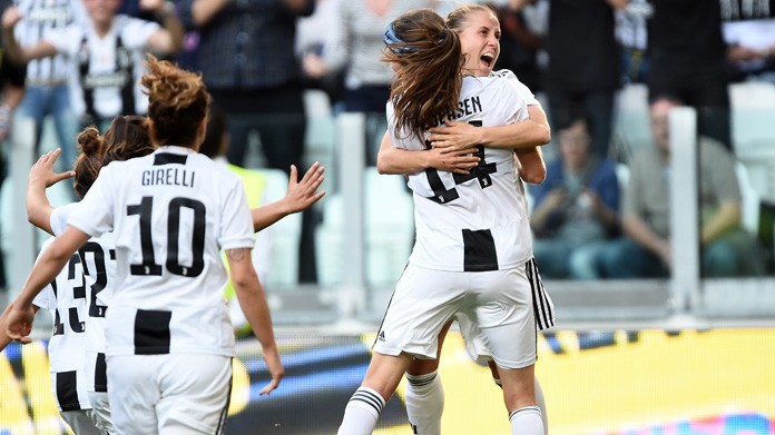 La calciatrice danese, approfittando di un erroraccio del portiere della Fiorentina, ha spinto la palla in rete consegnando, seppure virtualmente, lo scudetto alla squadra di Rita Guarino. In classifica, infatti, ora la Juve è a +4 sulle viola e +5 sul Milan a tre partite dalla fine. Più in generale, l’esperimento è stato promosso a pieni voti. Il pubblico dello Stadium ha apprezzato il gioco espresso dalle due squadre (seppure un po’ contratte a causa della posta in palio). Chissà se in futuro non si potrà replicare.
