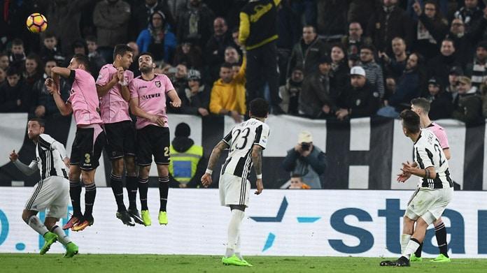 5′ – Goldaniga atterra Asamoah: punizione dal limite dell’area battuta da Dybala ed è palo esterno, ottima soluzione dell’argentino che aveva scavalcato la barriera rosanero