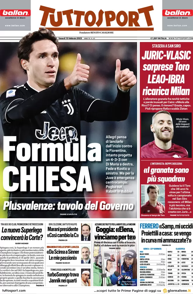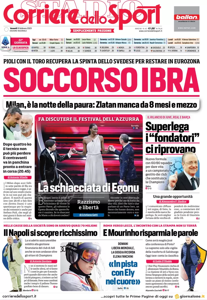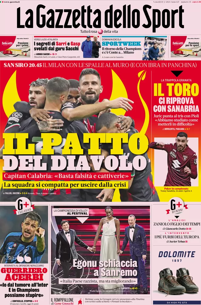 Le prime pagine dei quotidiani sportivi – 10 febbraio