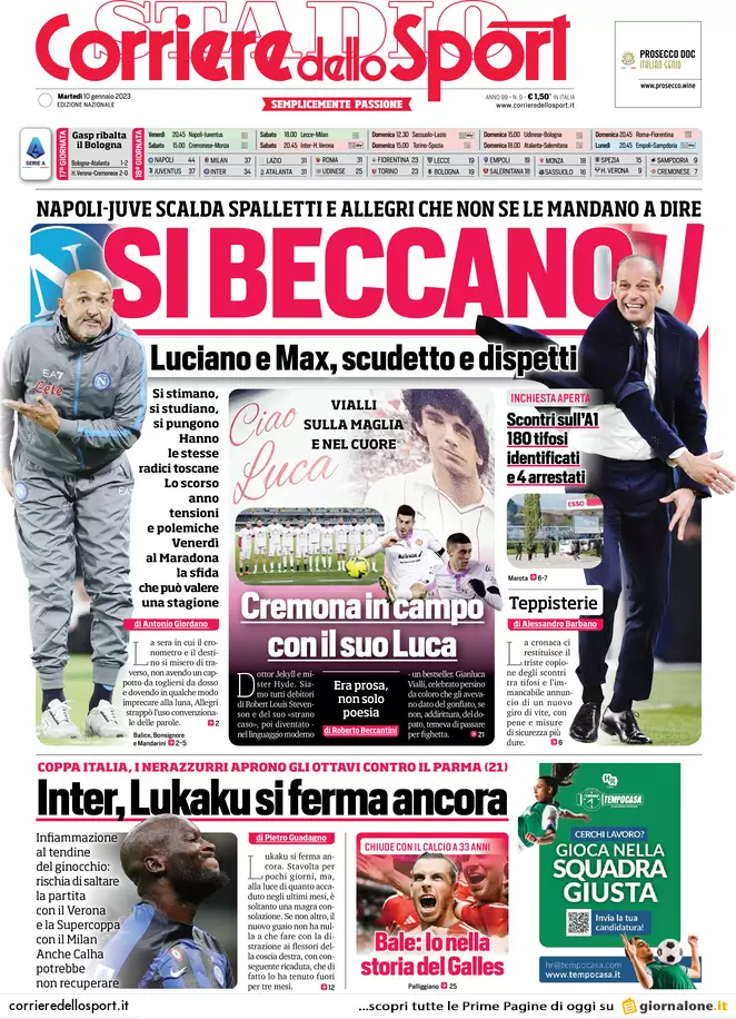 Le prime pagine dei quotidiani sportivi – 10 gennaio