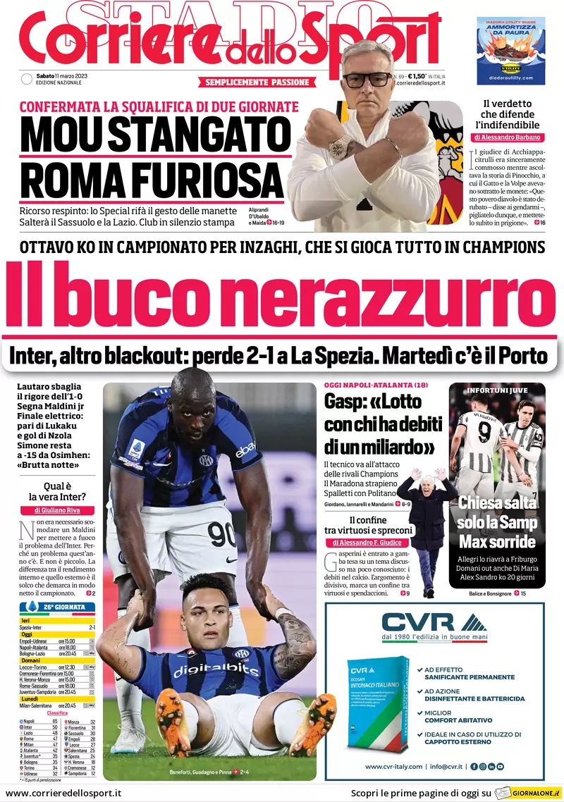 Le prime pagine dei quotidiani sportivi – 11 marzo