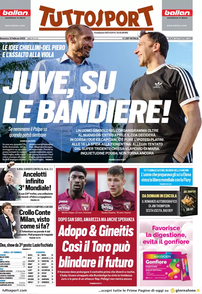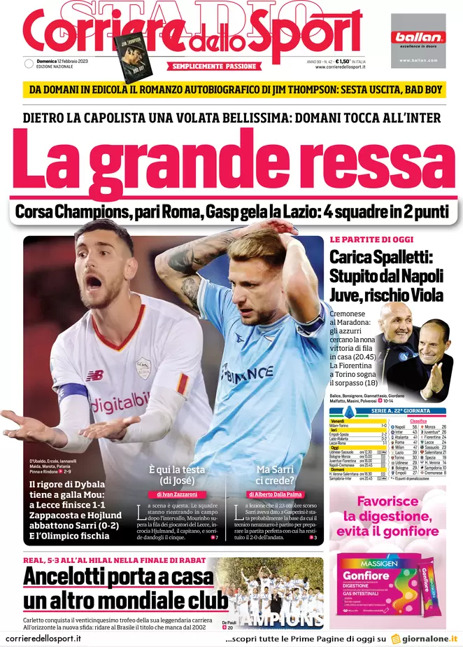 Le prime pagine dei quotidiani sportivi – 12 febbraio - Calcio News 24